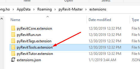 Các bác thấy đó, công sức người khác viết ra đã như vậy rồi, vậy thì công việc của mình chỉ là nhân đôi đường dẫn lên và viết mã thôi.Để làm được điều đó thì mình sẽ Copy từ chỗ pyRevitTools.extension nhân đôi lên một thư mục mới sau đó đổi tên lại pyRevit.tab thành tên của mình như HVC chẳng hạn, sau đó lưu lại.