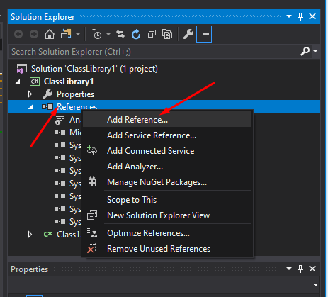 Tiếp theo mình sẽ nhìn vào thanh bên phải có mục References các bác chuột phải vào và chọn AddReferences.References thật ra chính là liên kết thư viện, việc này cũng giống như tải các gói thư viện của python thông qua pip.Có thể hiểu các bộ thư viện dll được đóng gói và đưa vào dự án gọi lên sử dụng lại được thông qua vị trí này.