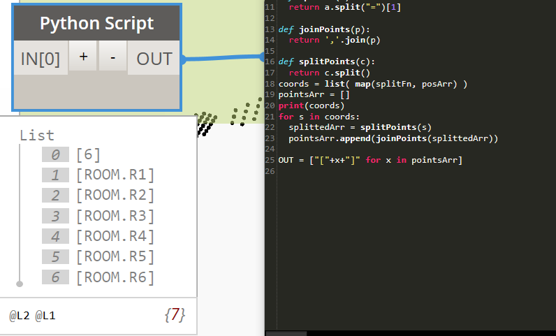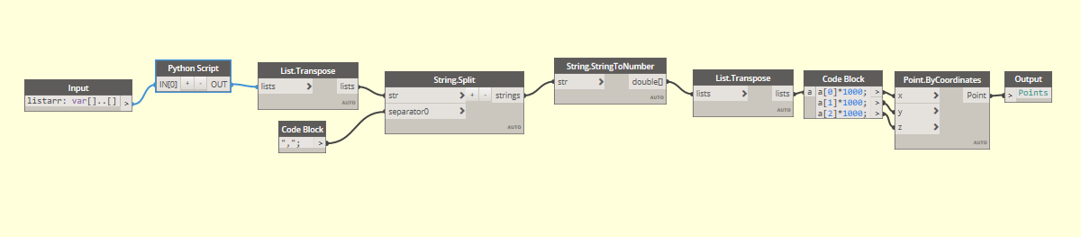 OUT = pointsArrOk con gà rồi, tiếp đến làm việc yêu thích là tách điểm và chuyển về đơn vị milimet để hoạt động hiệu quả và tái tạo lại điểm cho Revit