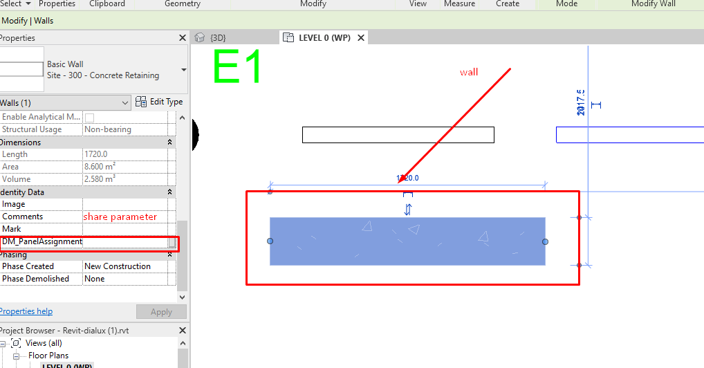 Parameter Param = GetOrCreateElemSharedParam(Element, praName, groupName, ParameterType.Text, true,true);