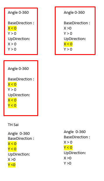 Việc đầu tiên chính là liệt kê các trường hợp có thể xảy ra góc đúng hướng và góc ở hướng âm.Như hình bên dưới ta sẽ liệt kê được 5 trường hợp cho góc xoay này.