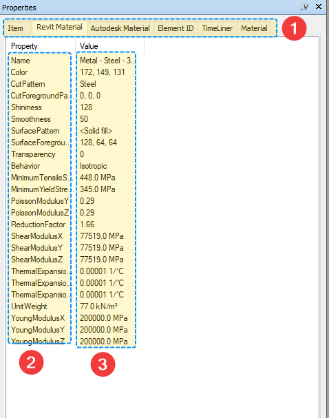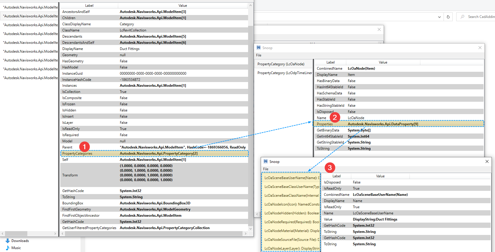 Bạn có thể dùng NavisLookup để kiểm tra nhanh thông tin thuộc tính cần lấy để biết được vị trí API cần lấy.