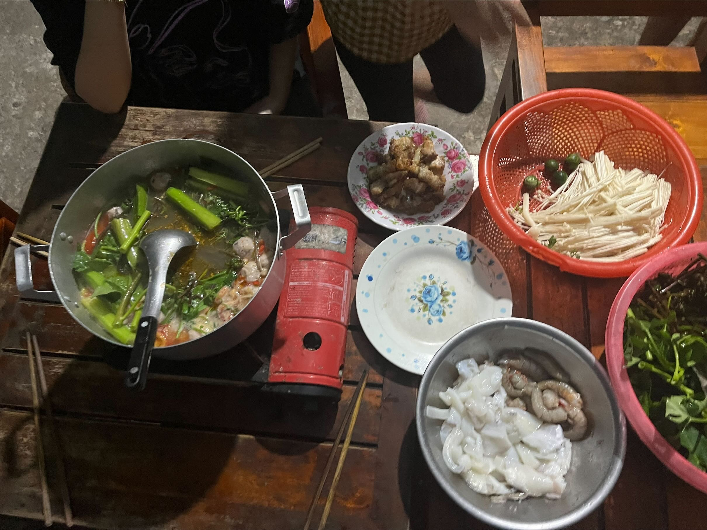 Ăn lẩu với gia đình, một chút ấm cúng từ quê nhà, cũng vì về lúc đảo đang mùa mưa bão nên cũng có ít cá tôm để ăn.Nhưng đó là niềm vui quý giá trước khi đi đến nước bạn.Tuy không hào nhoáng nhưng mang lại cảm giác quê nhà khó tả.