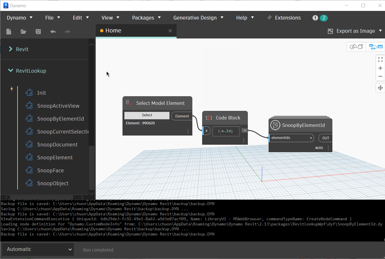 Then install a package with name RevitlookupWpf in Dynamo Package Manager.