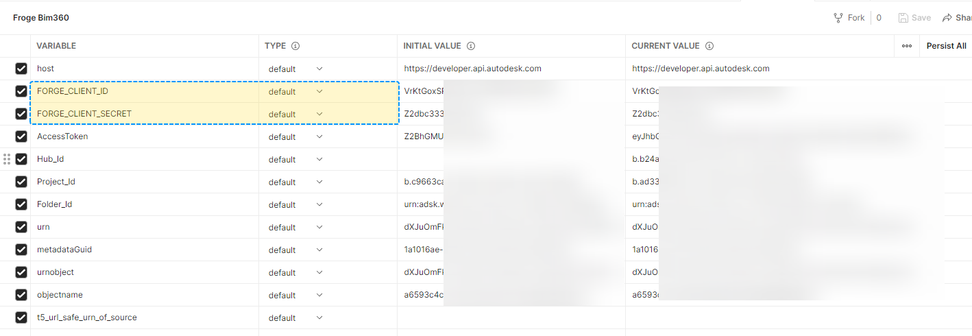 Lúc này bạn có thể dễ dàng xem hình bên dưới, host đã được gán vào biến môi trường thay cho https://developer.api.autodesk.com vì chúng lặp lại nhau ở mỗi API.