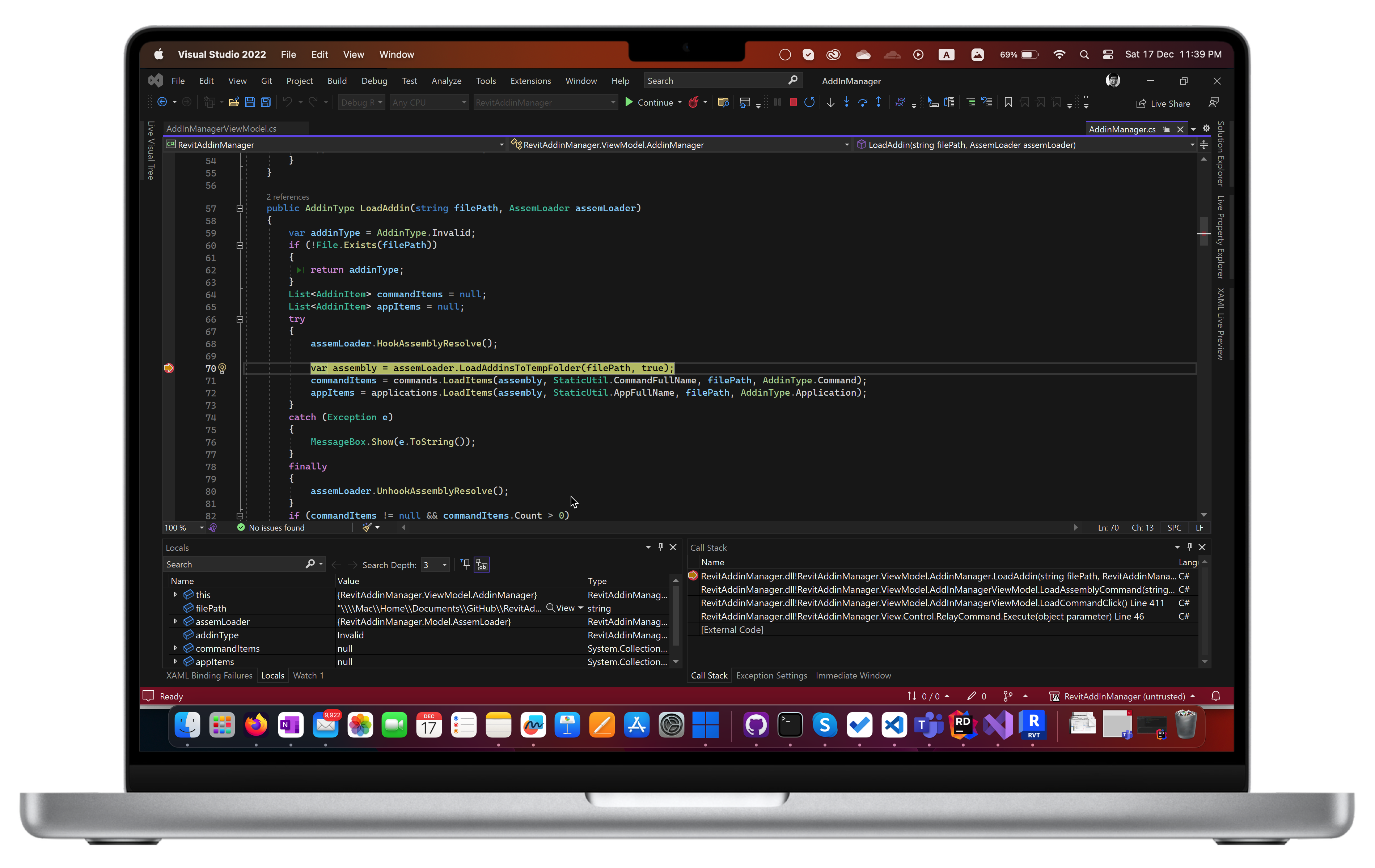 Và đây là kết quả là cũng thành công Debug và sửa lỗi cho RevitAddinManager đã báo cáo khi chạy với macOS M1 chip vài tháng trước. Debug hoạt động bình thường trên máy ảo không có sự cố, chỉ là khi chạy và mở Revit, nó hơi chậm.