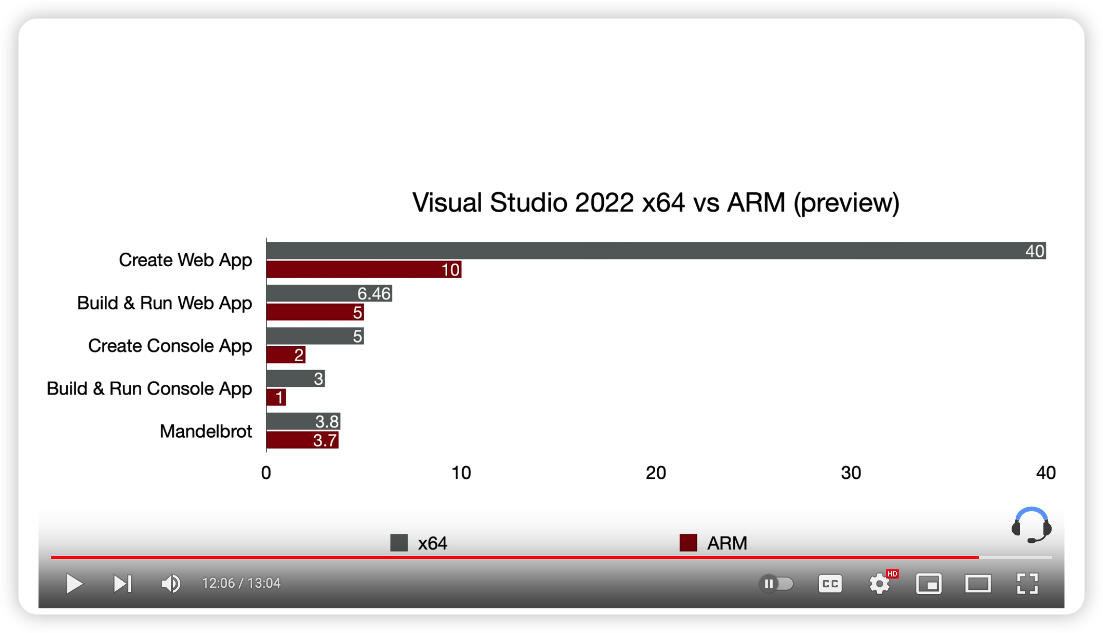Visual Studio 2022 cũng chạy khỏe trên Macbook M1. Theo cảm nhận cá nhân, các dự án build nhanh trông thấy. Video so sánh về Visual Studio ARM với X64 của anh chàng này trên Youtube đáng tin cậy. Một điều đáng chú ý là chúng chạy được với các dự án có .Net Framework 4.8, Net6 , Net Core trên máy ảo nhưng với phiên bản Native chạy trên Mac thì thật thực sự không ổn tí nào, nhất là với ai đó đang bảo trì cho các dự án cũ hay dự án phức tạp. Vì vậy Window vẫn là lựa chọn số một ở thời điểm này khi bạn làm việc với Visual Studio 2022.