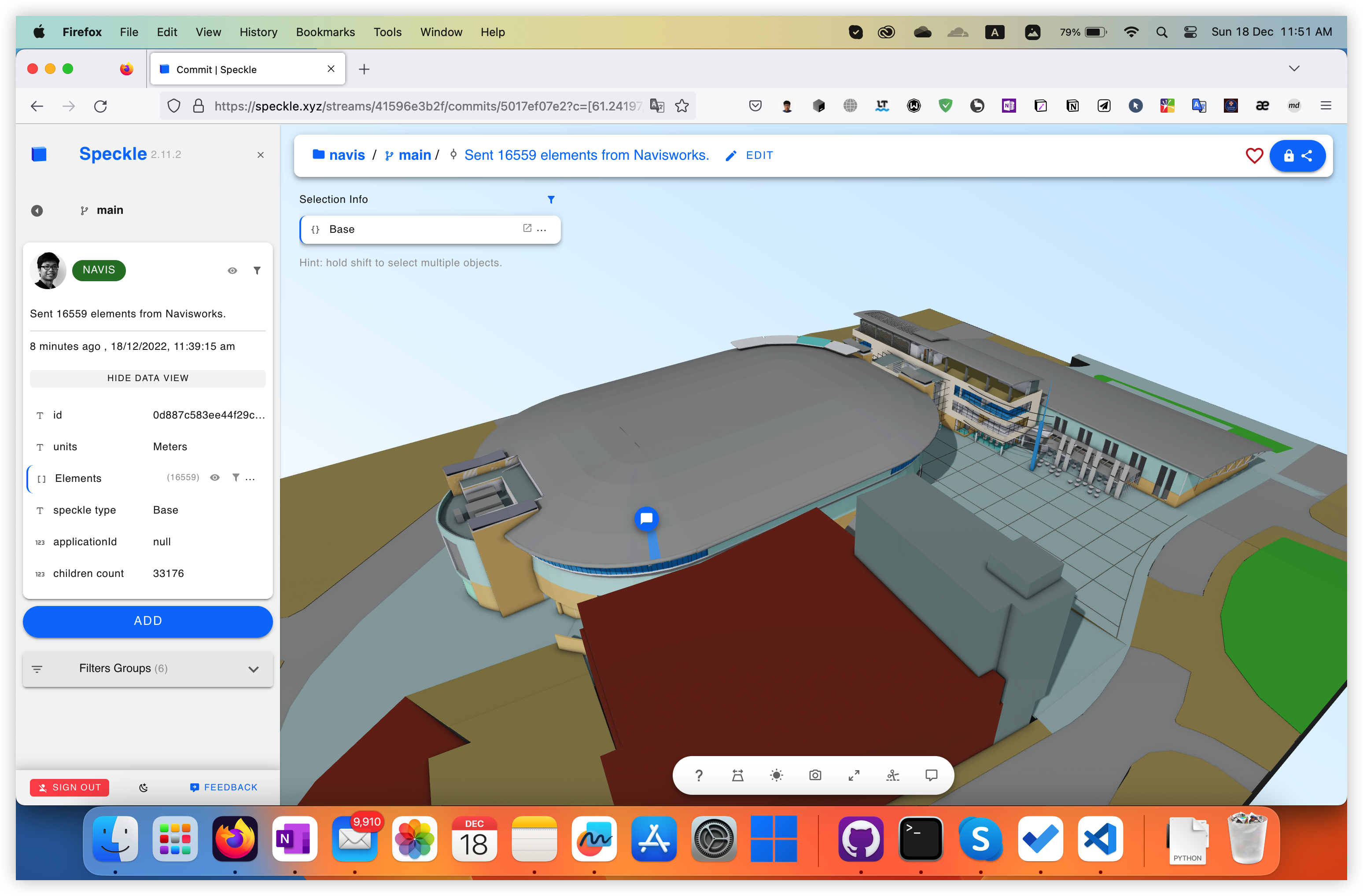 Việc đưa mô hình Navisworks lên Speckle thông qua Navisworks Connector cũng không gặp chút trở ngại nào.
