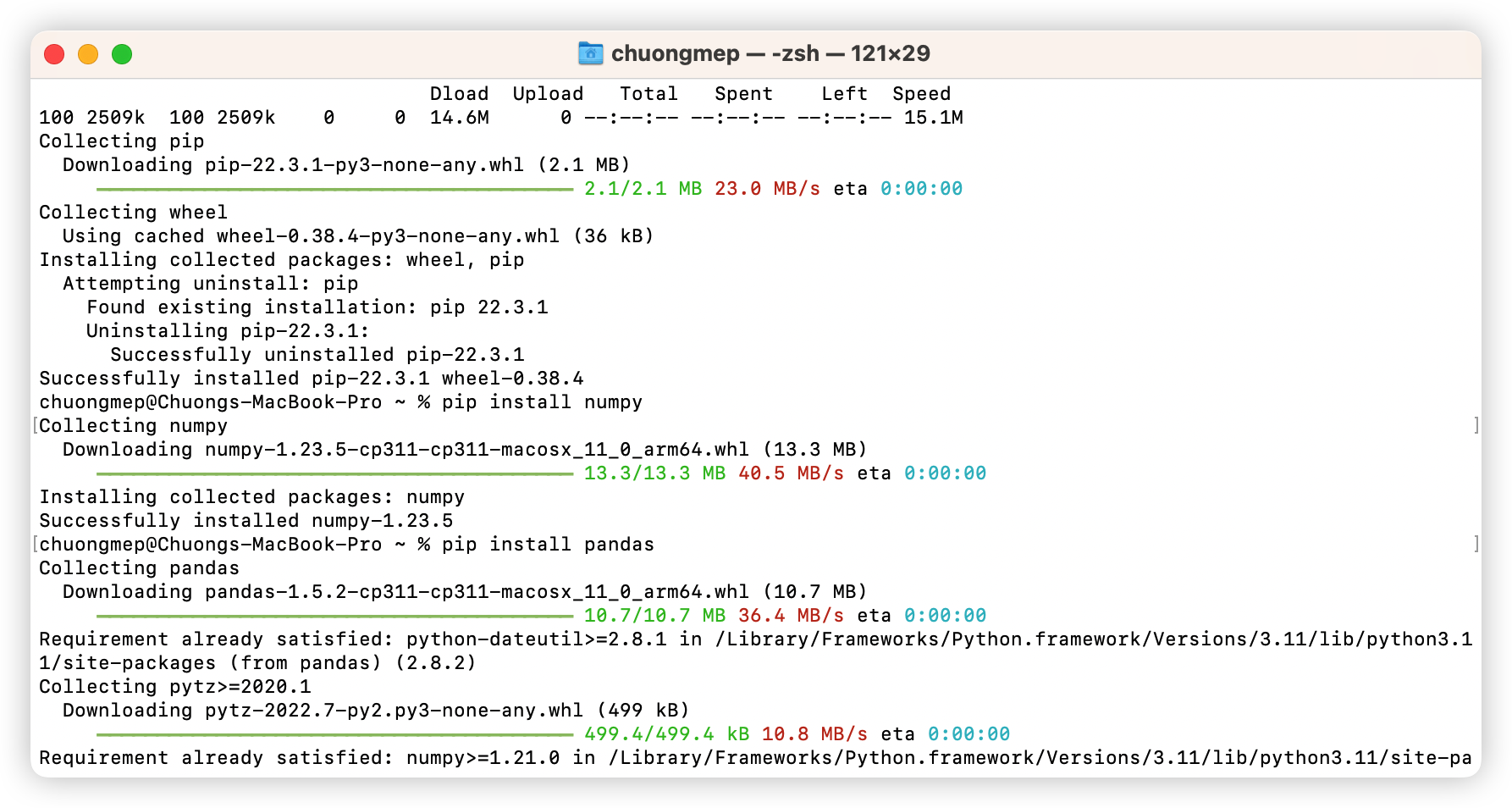 Cài đặt các gói python package cũng dễ dàng, sau khi cài đặt python, bạn cài thêm pip (python package install để nhanh chóng tải các gói)