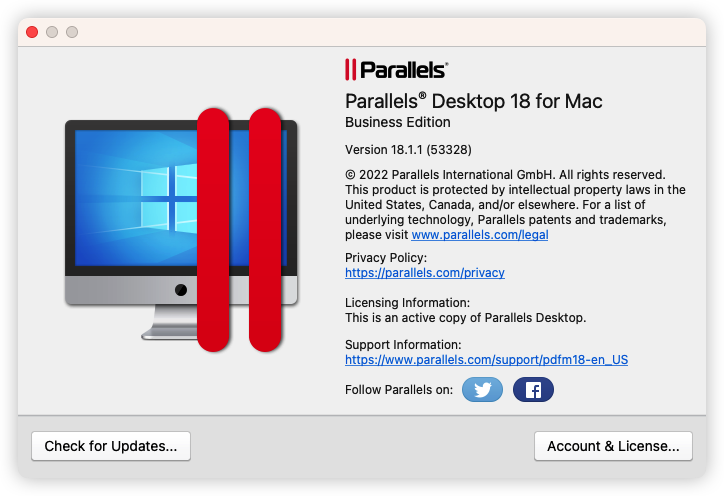 Ngoài ra mình còn sỡ hữu thêm phiên bản Parallels Desktop phiên bản 18.1.1 để chay hai máy ảo là WindowsLinux cho các tác vụ cần đến cho 3 hệ điều hành. Và tất nhiên bạn cũng cần phải trả một cái giá khá đắt cho phần mềm này.