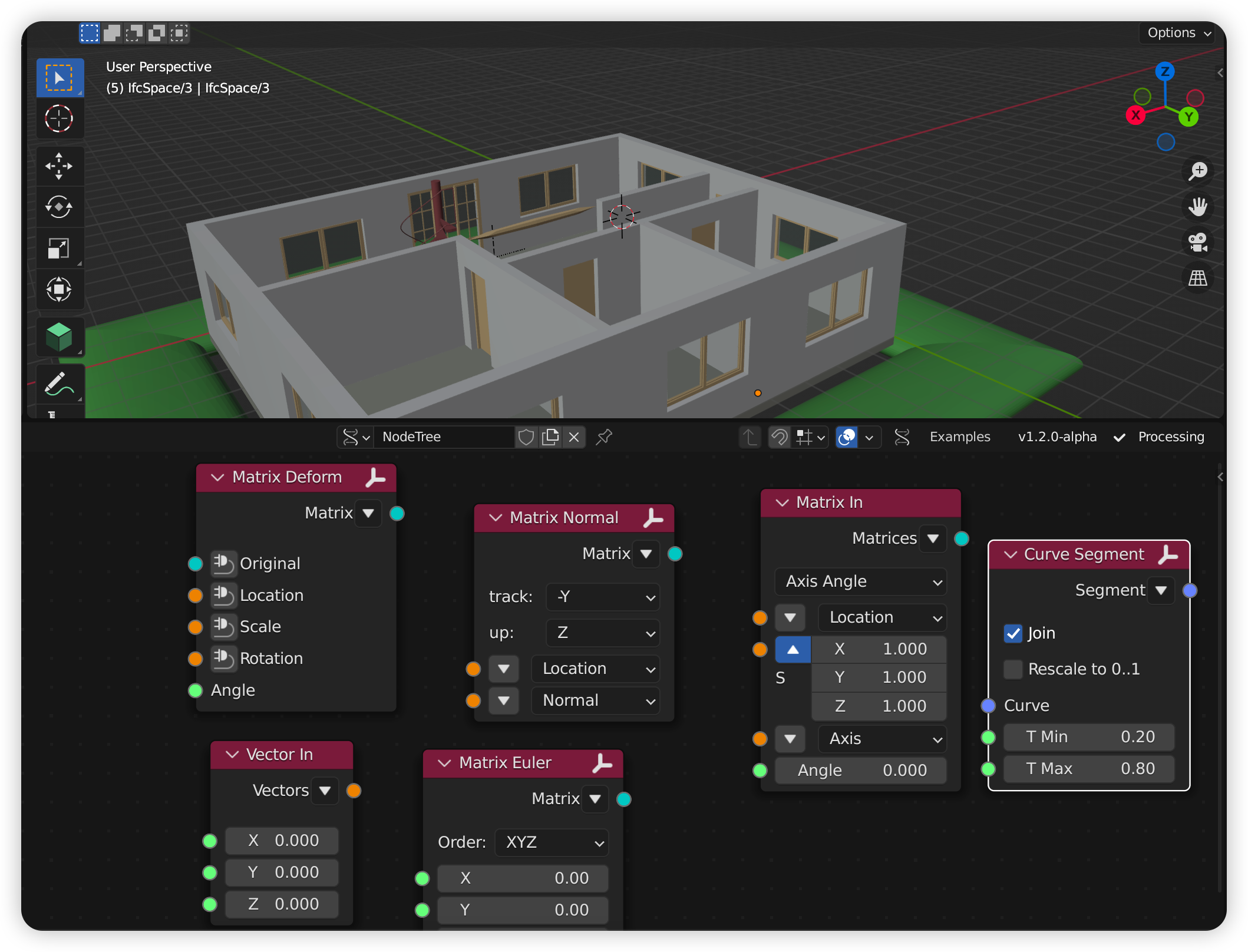 • sverchok - Scerchok is good to combine with Blender BIM. It includes a set of nodes that allow you to create parametric geometry and BIM data.