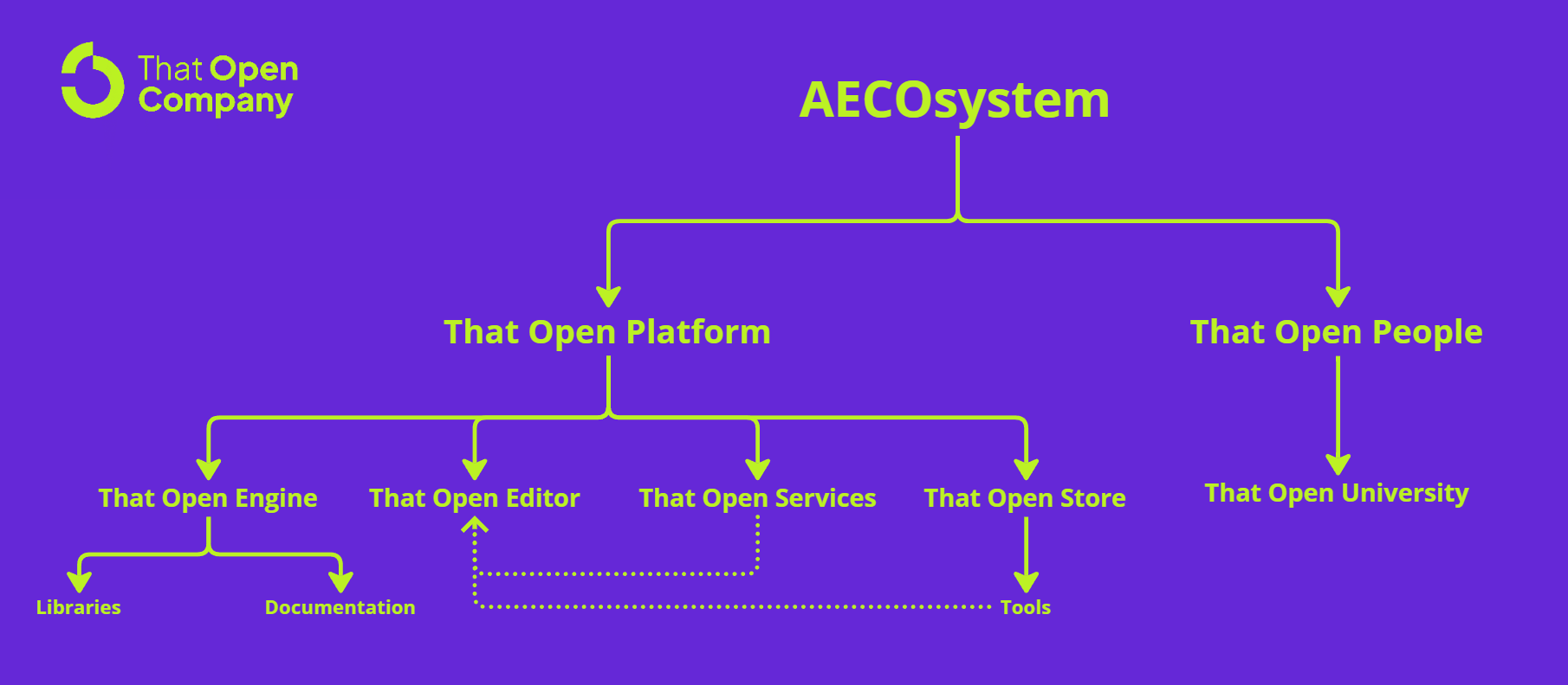 Discover "That Open Platform," a comprehensive resource for creating applications in the AECO sector. It includes the free and open-source "That Open Engine" for common 3D graphics challenges, extensively documented to support your journey. The web-based BIM application, "That Open Editor," utilizes the Engine and community-built tools. Cloud-based services like file storage and user behavior analysis, accessible via tokens through "That Open Services," optimize workflows. Soon, the "That Open Store" will offer a virtual marketplace for integrated tools. Explore freedom in the AECOsystem through the "First Step to Freedom Course." Join us and welcome to the AECOsystem! 👋