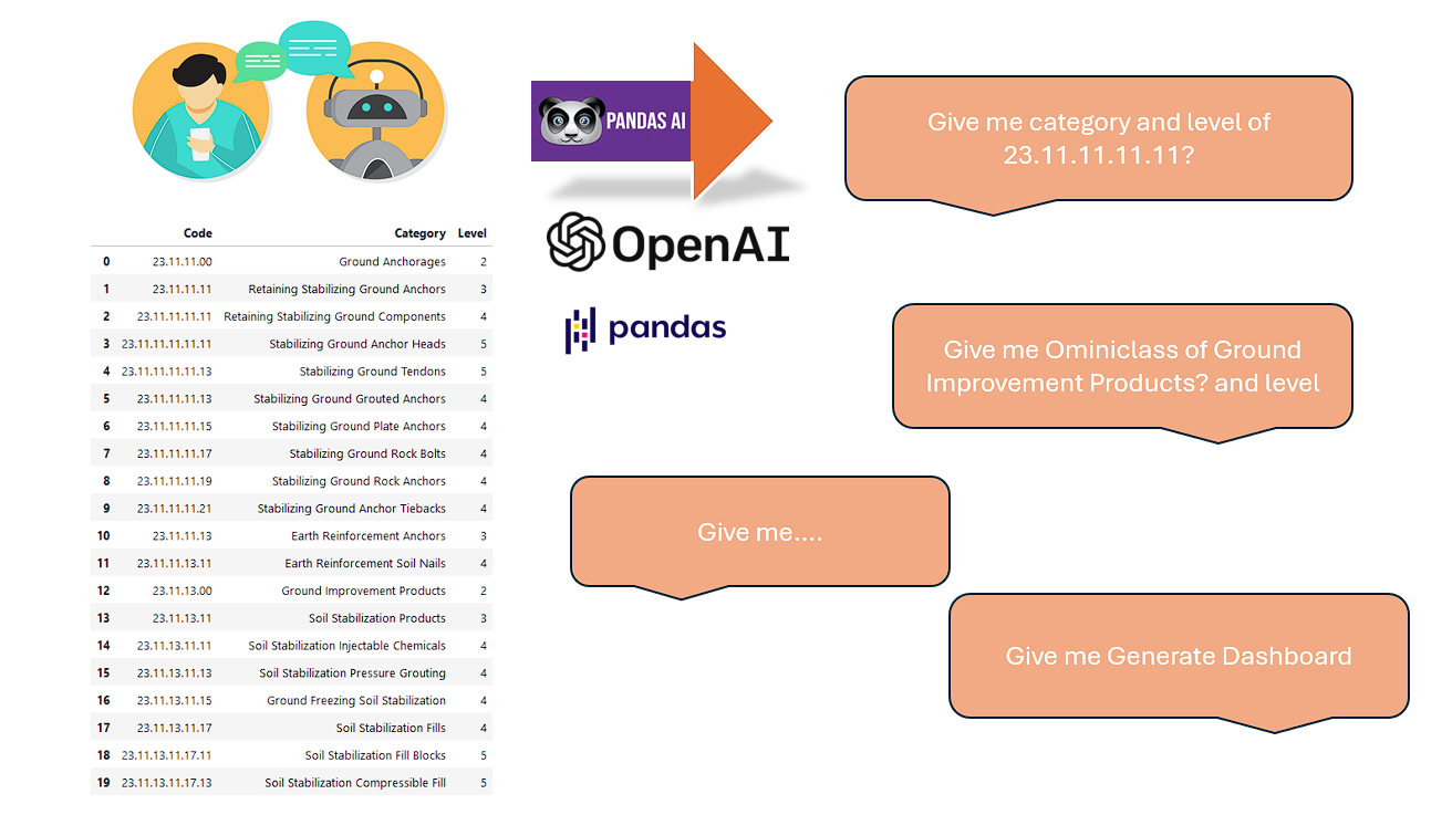 One of the primary tools driving this AI-powered transformation is PandasAI, a cutting-edge library that integrates AI capabilities into data manipulation tasks. With PandasAI, construction professionals can streamline the process of organizing OmniClass data, ensuring consistency and accuracy in classification.